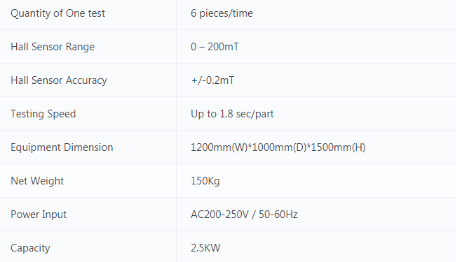 測試項目包括極數(shù)、N/S通量密度、最小通量、最大通量、單節(jié)距誤差、累計節(jié)距誤差等。