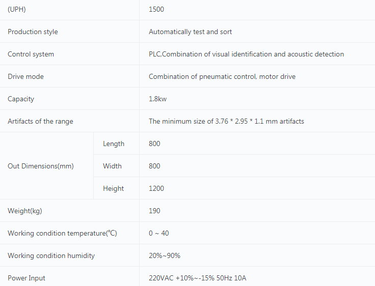 通過振動盤和線性給料器傳送零件,然后經(jīng)過機器視覺系統(tǒng)檢測,被機器人抓取,自動連接到測試系統(tǒng),電聲軟件將收集和分析測試數(shù)據(jù),然后將零件分類放入不同的箱子。
