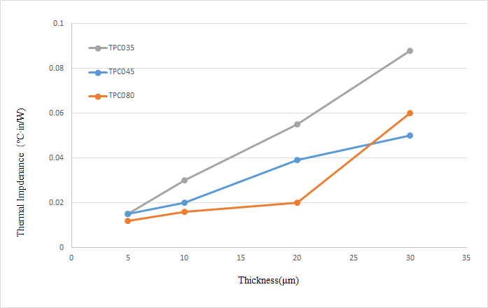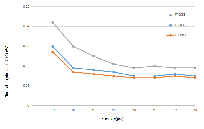 | Thermal Resistance(@20psi) | ℃·in2/W | 0.056 | 0.039 | 0.006 | ASTM D5470 |