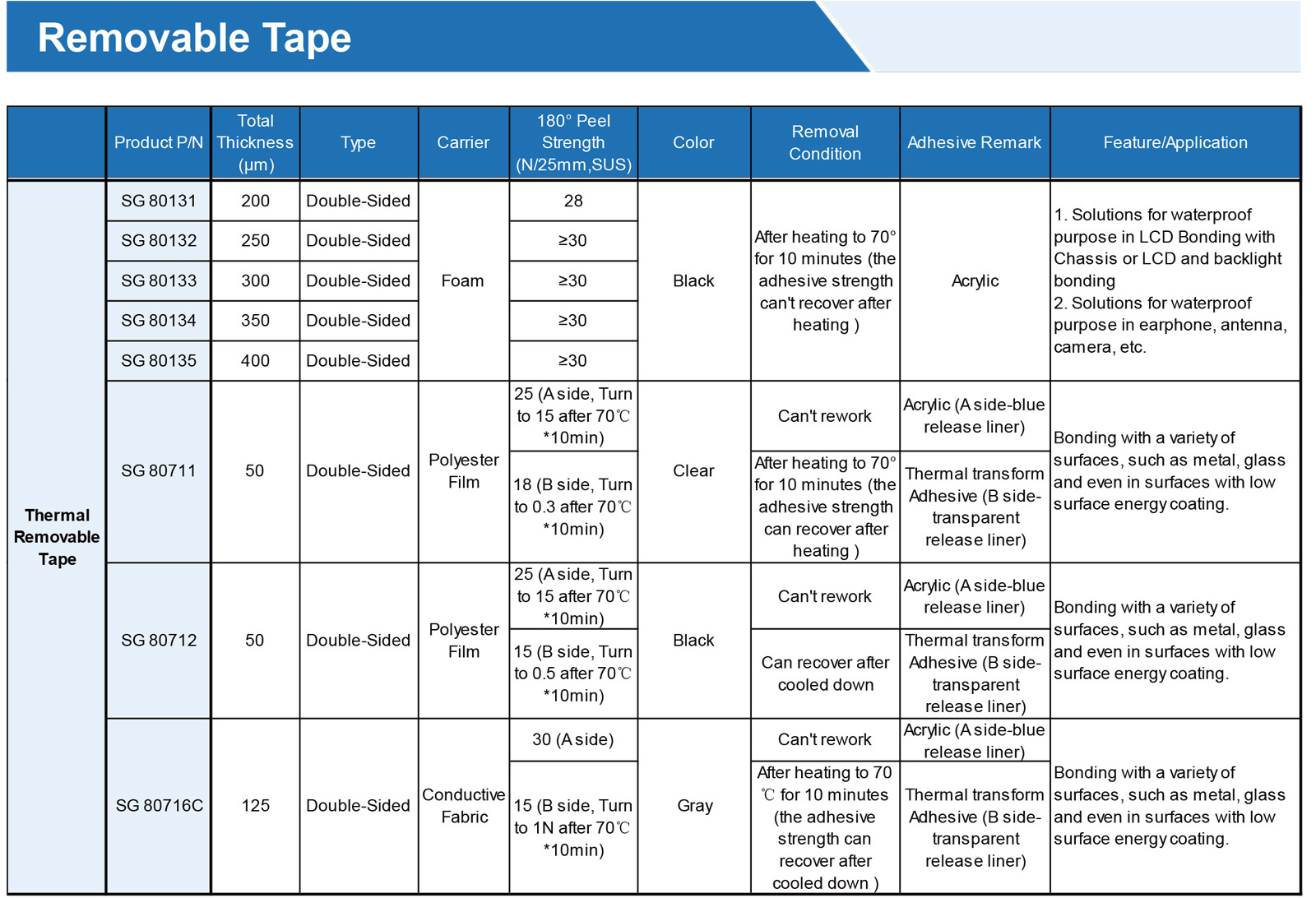 首頁 > 產(chǎn)品 > 膠帶材料 > 膠帶 > 熱可拆卸膠帶(可返工)