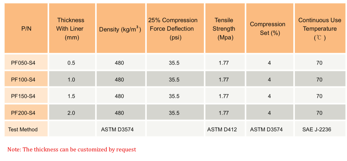 TM PF-S4 系列是一種穩(wěn)固、快速回彈的泡沫,用于電子設(shè)備的緩沖、保護(hù)性密封和長期間隙填充。S4系列具有非常好的耐磨性、高密封性能和優(yōu)異的沖擊吸收性能,可用作腳墊。" />