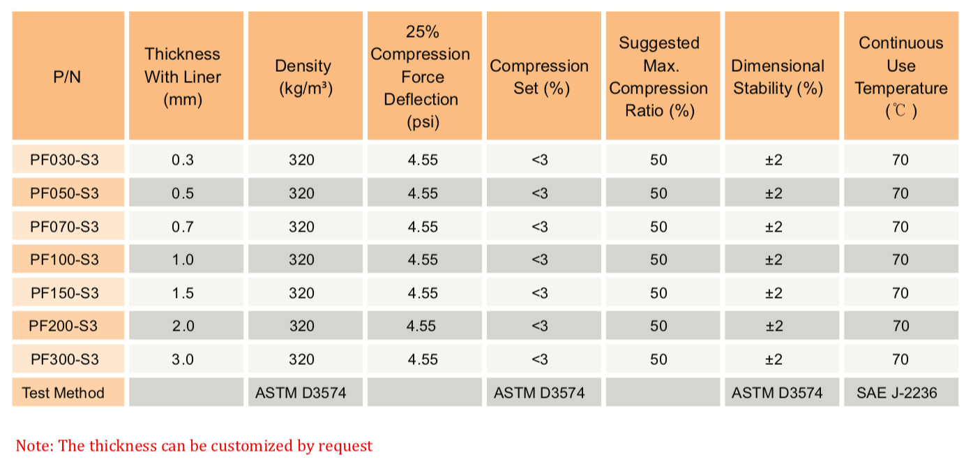 TMPF-S3 系列是一種中等柔軟、快速回彈的泡棉,具有緩震、保護(hù)作用 密封和電子設(shè)備中的長期間隙填充。S3系列泡棉具有極低的壓縮永久變形、高密封性能和優(yōu)異的沖擊吸收性能。" />